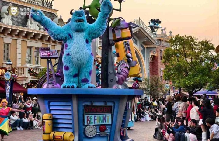 角色大游街紧随其后,朱迪、米奇等经典角色乘花车而来,学子们围拢抓拍、挥手互动,有人收获角色专属回应,花车停靠时有序合影,定格欢乐瞬间。
